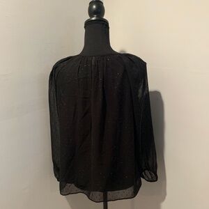 J. Crew Point Sur Popover Pin Dot Chiffon Blouse in black. Attached camisole lining. Women's size small. Gently used with no flaws.