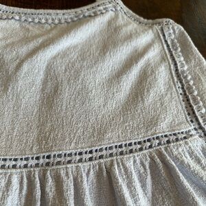 Nice preowned condition with no falls to note. 100% breathable cotton fabric.. crochet lace detail insects on bodice and straps with a lace trim detail on hem. Peplum/babydoll fit.