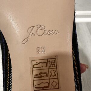 J Crew Pointed Toe Flats Womens Sz 9.5 Black Tartan Plaid Rhinestone Bow Preppy