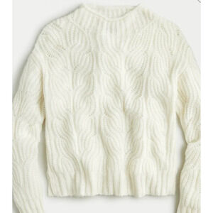 J. Crew Pointelle Cable Knit Mockneck Sweater Women’s Small White Alpaca Blend