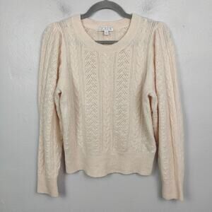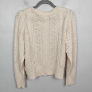 J Crew Pointelle Cable-knit Crewneck Sweater Womens Medium Cream Wool Cottage