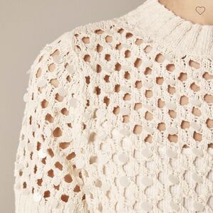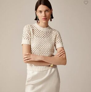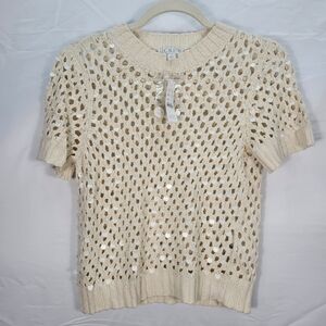 J. Crew Pointelle Embellished Short Sleeve Sweater - Natural CH219 Size S