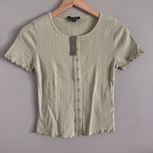 J. Crew Pointelle Short-Sleeve Knit Cardigan Top Green XS CI601 New