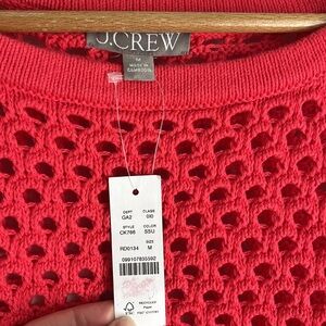 Boatneck, open knit. Cropped and slightly oversized. Strawberry color, reddish pink. New.