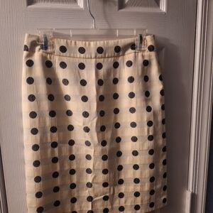 Stylish cream pencil skirt with bold black polka dots. Perfect for any occasion.