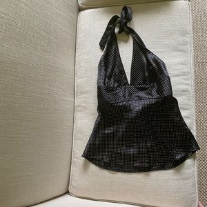 J Crew 100% Silk Black and White Polka Dot Top. Ties at neck, Lower back zipper.