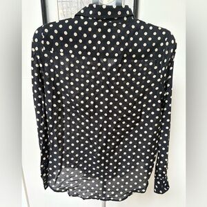 J Crew Polka Dot Silk Cotton Blouse Black Cream Size Medium