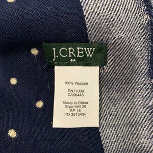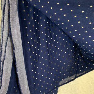 J Crew Polka Dot Wool Navy Blue Scarf w/Tassels 72 x 40