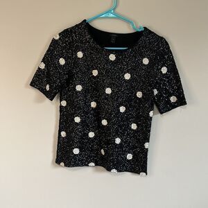 J. Crew Polka-Dot Sequin Short-Sleeve Top XS