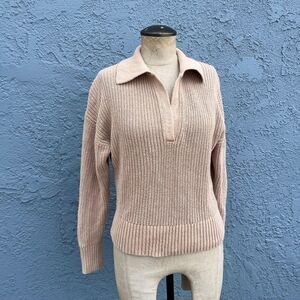 J. crew Collared cotton beach sweater in small. Nice knit with open collar. Warm Beige color