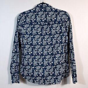 J. Crew Popover Blouse Deer Winter Blue White Longsleeve Top Women Size 2