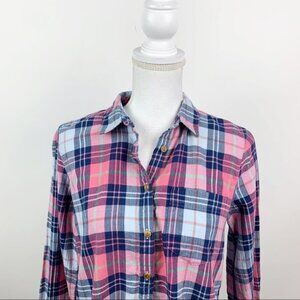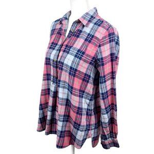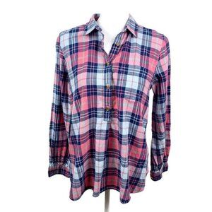 Classic plaid Popover shirt in the pattern smoky coral. Half button down shirt. New with tags.