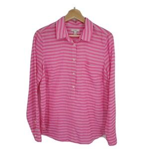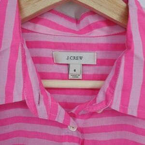 J Crew Womens Popover Tunic Top Silk Cotton Pink Stripes Size 6