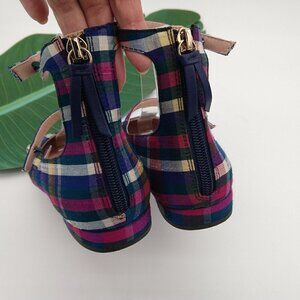 J Crew Poppy Madras Plaid 2 strap ballet flats, size 8. They are gently pre-owned and free from any stains or flaws. May show light wear or scuffs from normal use.