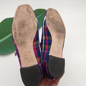 J Crew Poppy Plaid 2 Ankle Strap Ballet Flats Size 8 Purple Madras Rare Festive