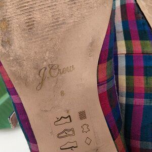 J Crew Poppy Madras Plaid 2 strap ballet flats, size 8. They are gently pre-owned and free from any stains or flaws. May show light wear or scuffs from normal use.