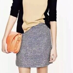 J Crew Postage Stamp Mini Skirt Tweed Lurex Exposed Zipper Metallic Size 6