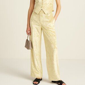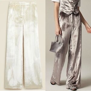 J. Crew Preppy Holiday Carolina Drapey Velvet Wide Leg Trouser Cream Yellow 8