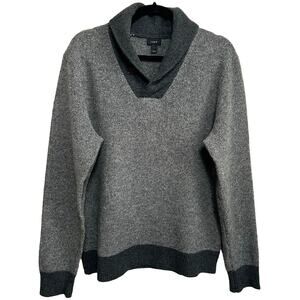 J. Crew Shawl Collar 2 Tone Charcoal Gray 100% Wool Sweater