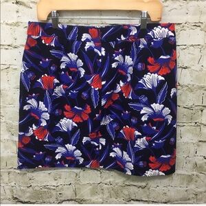 J Crew Women’s Purple And Blue Floral Print basket weave mini skirt size 12 Lined in like new condition with no flaws.