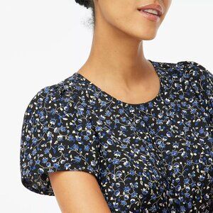 J. Crew Printed Short Sleeve Crepe Floral Black Top Size M NWT