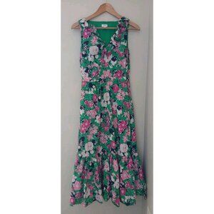 J. Crew Facotry Printed Midi Dress.  Size 2.  Green with a pink and white floral pattern.  Sleevess.