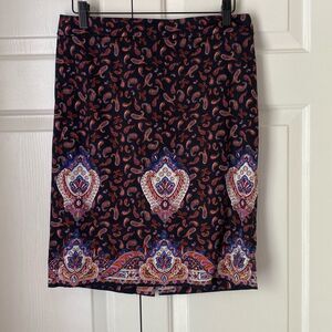 J. Crew Printed pencil skirt in sateen dot Size 2 Paisley Red Currant Gray