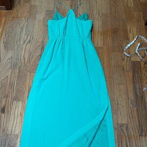J. Crew Prom Dress sweetheart neckline Size 0 Racerback tourquoise Lined Slit