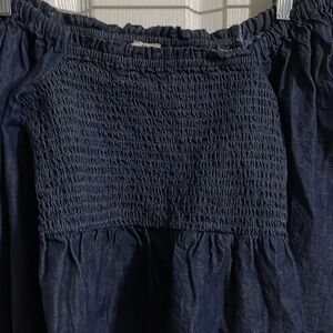 J. Crew Puff Sleeve Blue Denim Chambray Smocked Top Shirt Womens size XS