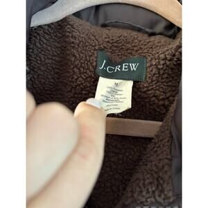 J Crew Puffer Vest Womens Medium Brown Snap and Zip Up Collared Faux Fur Lined