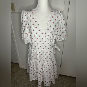 J. Crew Puff-sleeve cotton poplin wrap dress in white rose dot size M