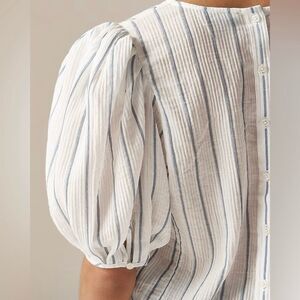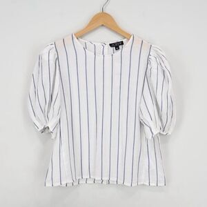 J. Crew Puff-sleeve top in sheer gauze in Ivory Blue Size XS NWT CI529
