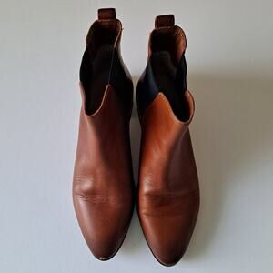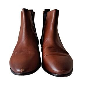 J. Crew Pull-On Leather Ankle Chelsea Boots Almond Toe Brown Womens Size 8