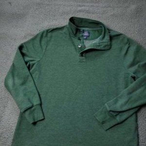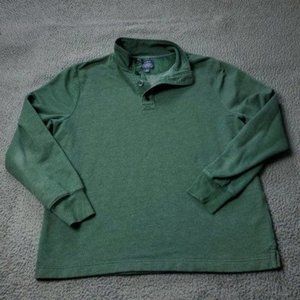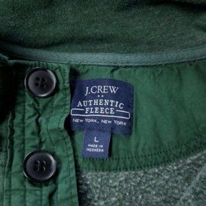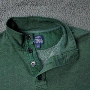 J. Crew Pullover Button Up Fleece Sweater Cotton Green Mens L Large