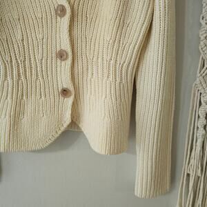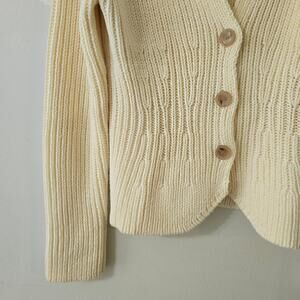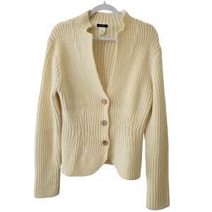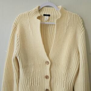 J. Crew Pure Merino Wool Cable Knit Fitted Cardigan Sweater Ivory Size L Large