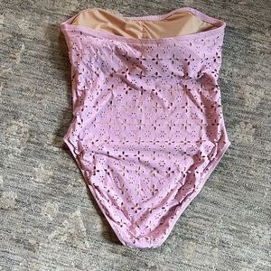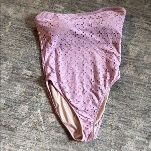 J. Crew Purple One Piece swim suit - cutout floral design - strapless - medium
