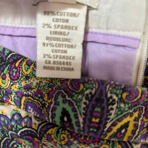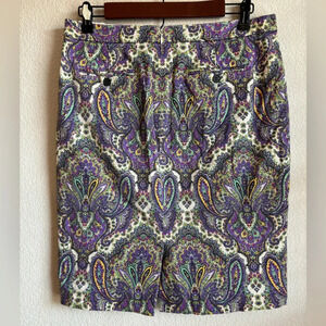A colorful spin on the iconic No 2 Pencil skirt! Purple paisley print with back pockets and invisible back zipper. Fully lined with vent slit in back. Great piece to add a pop of color at the office or any occasion!