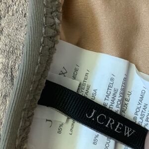 J Crew putty grey deep v neck wrap tie waist halter neck one piece tank swimsuits. Size 8. Fully lined. Back neck hook closure. No cops or padding.