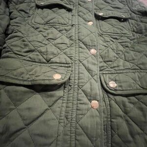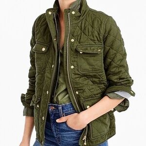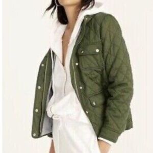 J. Crew Quilted Downtown Field Green Cotton Zip Gold Snap Jacket XS