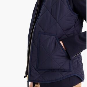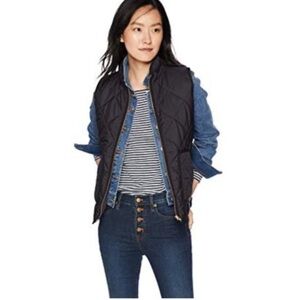 J. Crew Quilted Full Zip Down Vest in black. Size small. Great condition. Some of the stock photos show navy, but it’s just to show the style and fit.