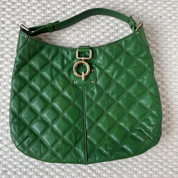 J. Crew Quilted Green Leather Quincy Quilted Hobo Bag Gold Color Hardware