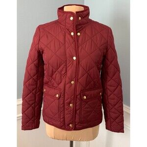 J Crew Quilted Jacket Womens S Barn Coat Patch Pockets Lined Preppy Burgundy