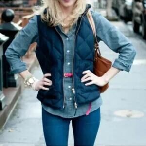 J. Crew Quilted Puffer Excursion Vest Navy Blue Two-Way Zipper 92465 Size S