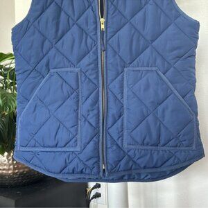 J Crew Quilted Puffer Vest Sz M Full zip Navy Blue