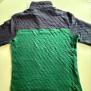 Very good used condition. Attractive color-block design in navy blue and mountain pine green. This preppy quarter-zip pullover looks great with jeans, khakis, and is perfect for work and on the go. Preppy classic, updated for today's on-the-go lifestyle.