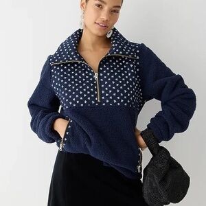 J. Crew Quilted Sherpa Fleece Half-Zip Pullover in Print Size Small Women’s
