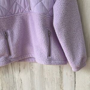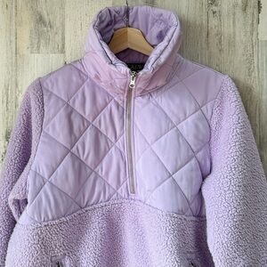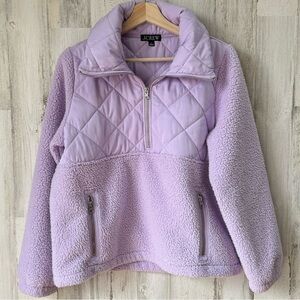 J. Crew Quilted Sherpa Teddy Jacket Lavender Purple, Relaxed Fit, Half Zip, Pockets!