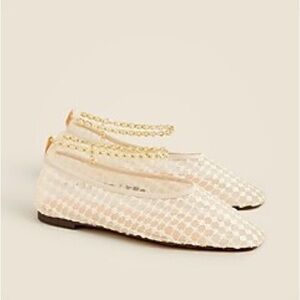 J. Crew Quinn Embellished Removable Ankle-Strap Ballet Flats in Mesh