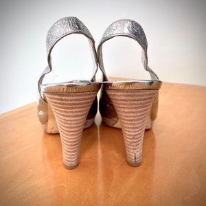 J. Crew RARE Colette Mirror Platform Metallic Silver Slingback Pumps