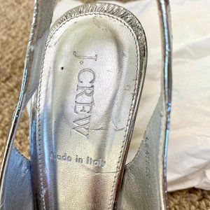 J. Crew RARE Colette Mirror Platform Metallic Silver Slingback Pumps
